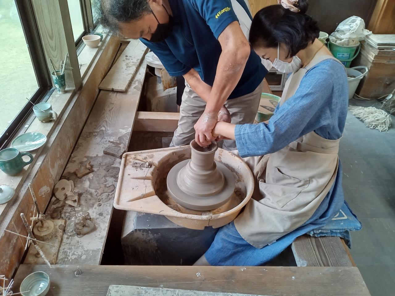 ろくろを使用し、皿、ビアマグ、湯呑、茶碗など作成ができるのほか、皿、湯呑に絵付けなど3つの体験教室があります。