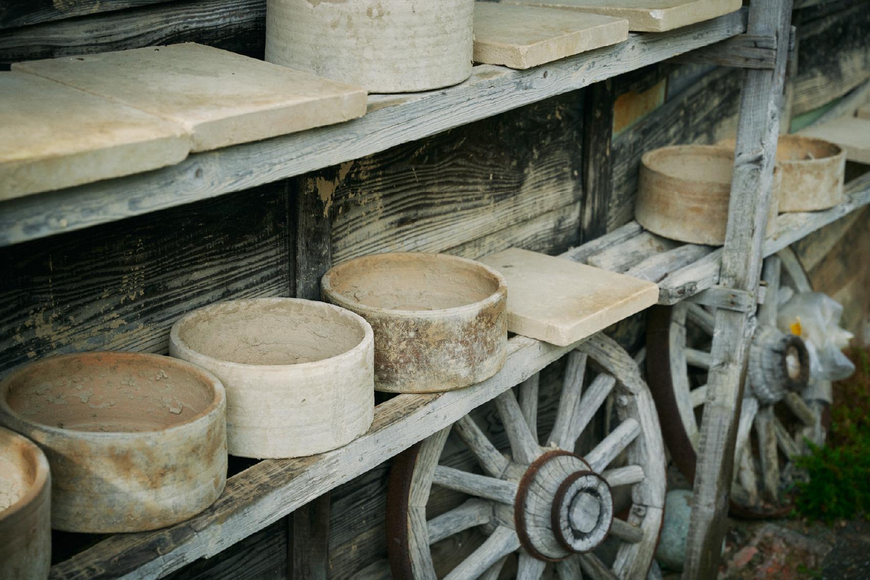 三助焼の原料となる粘土は、窯元近くの山から掘り出した原土を1年近く寝かせ、そこから2か月ほどかけて粘土を作り、さらにその粘土を半年~1年程度寝かせたものを使用しています。味わい深い三助焼の風合いは、こうして砺波の土と徹底して向き合うことから生まれています。土にふれた時に得られる心の安らぎが、そのまま三助焼の器たちにも宿っているように感じられます。