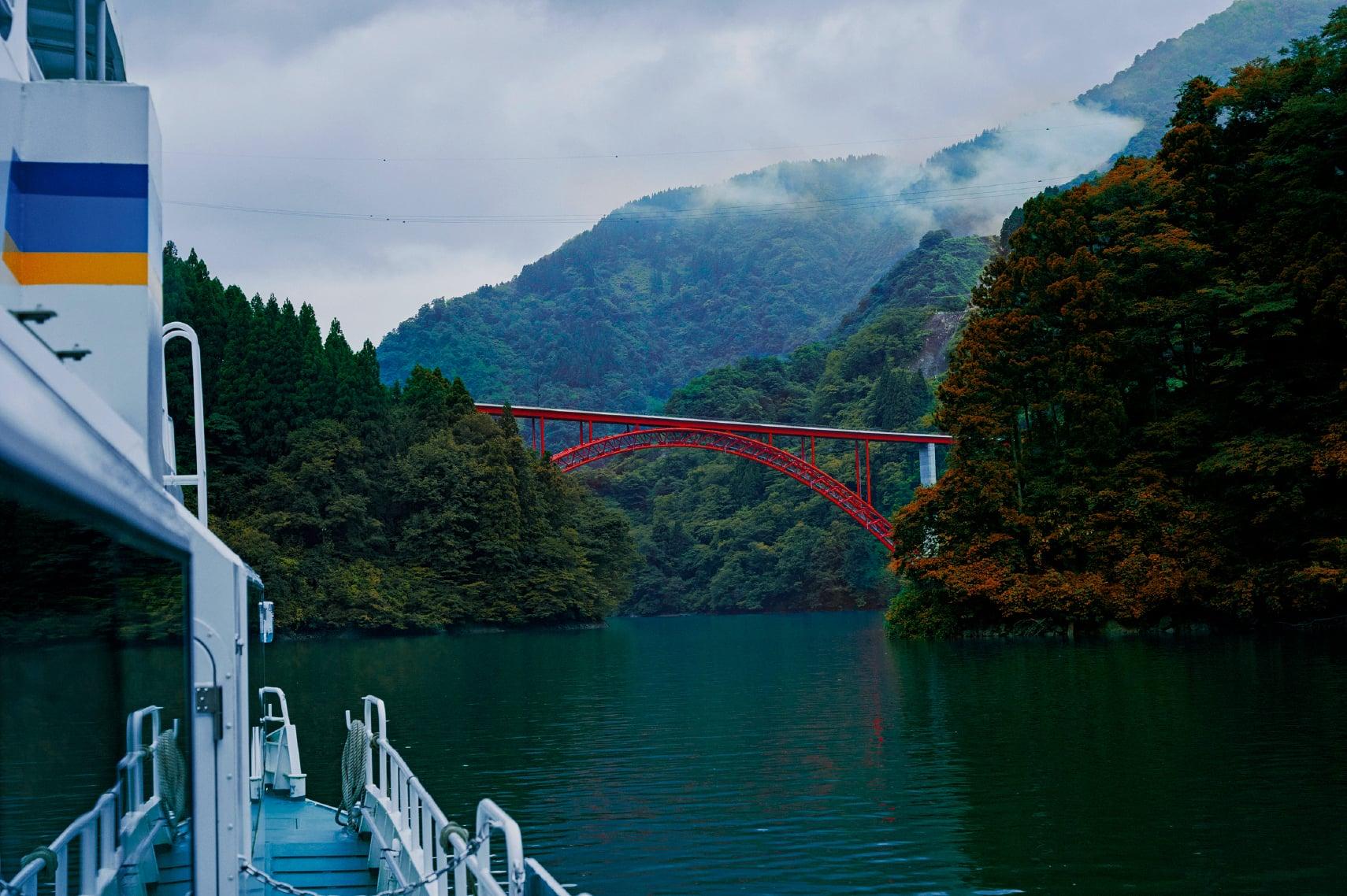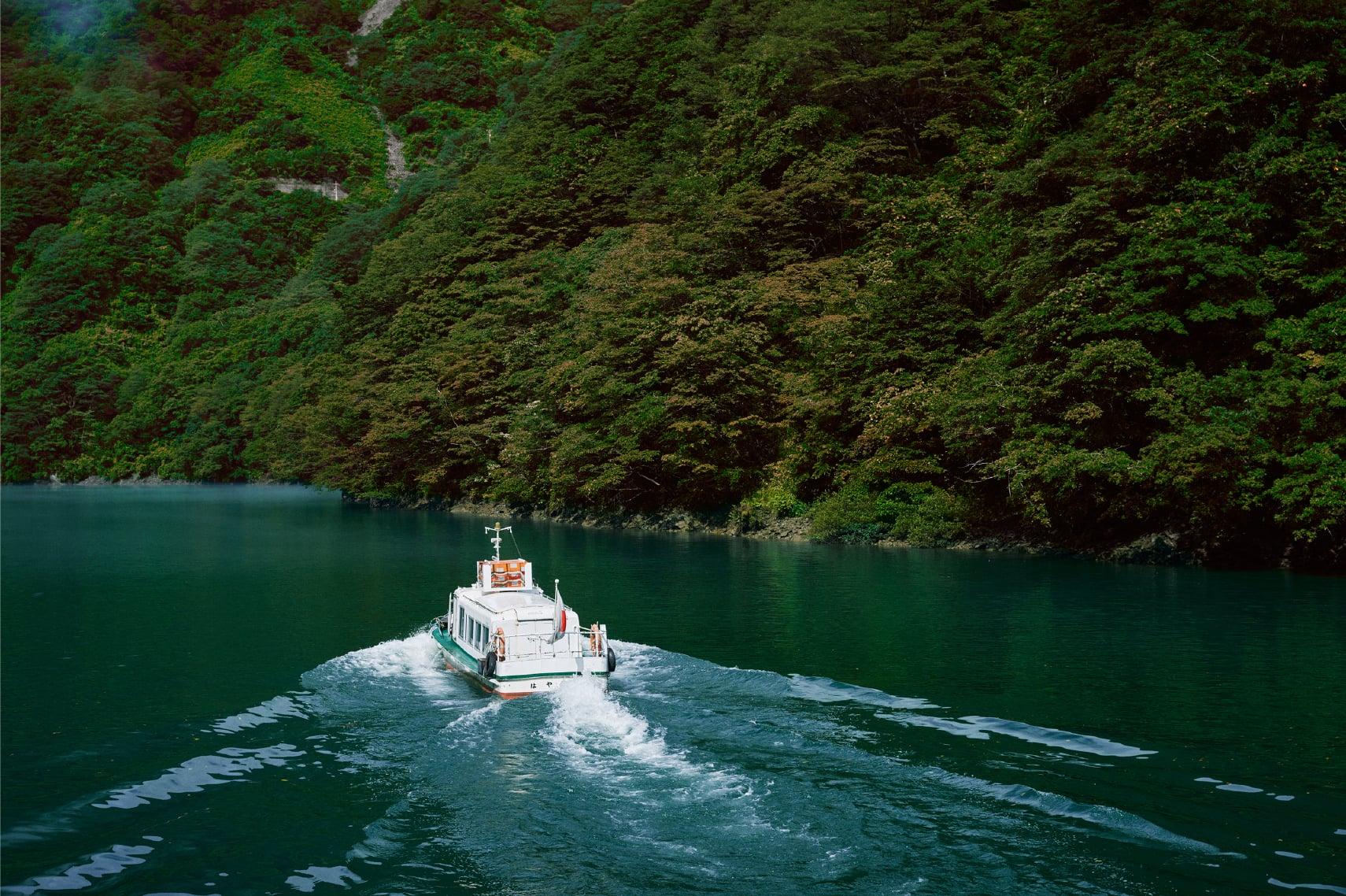 四季折々で異なる表情を見せる庄川峡の風景は、その日・その瞬間だけの美しさを見せてくれます。穏やかなエメラルドグリーンの水面と山の木々、また歴史を感じさせる人工物も自然の風景に溶け込んで、どこか遠い国や違う時代を旅するような不思議な気持ちを楽しませてくれることでしょう。大自然の中をゆったりと進む遊覧船の上で、ここにしかない非日常をご堪能ください。