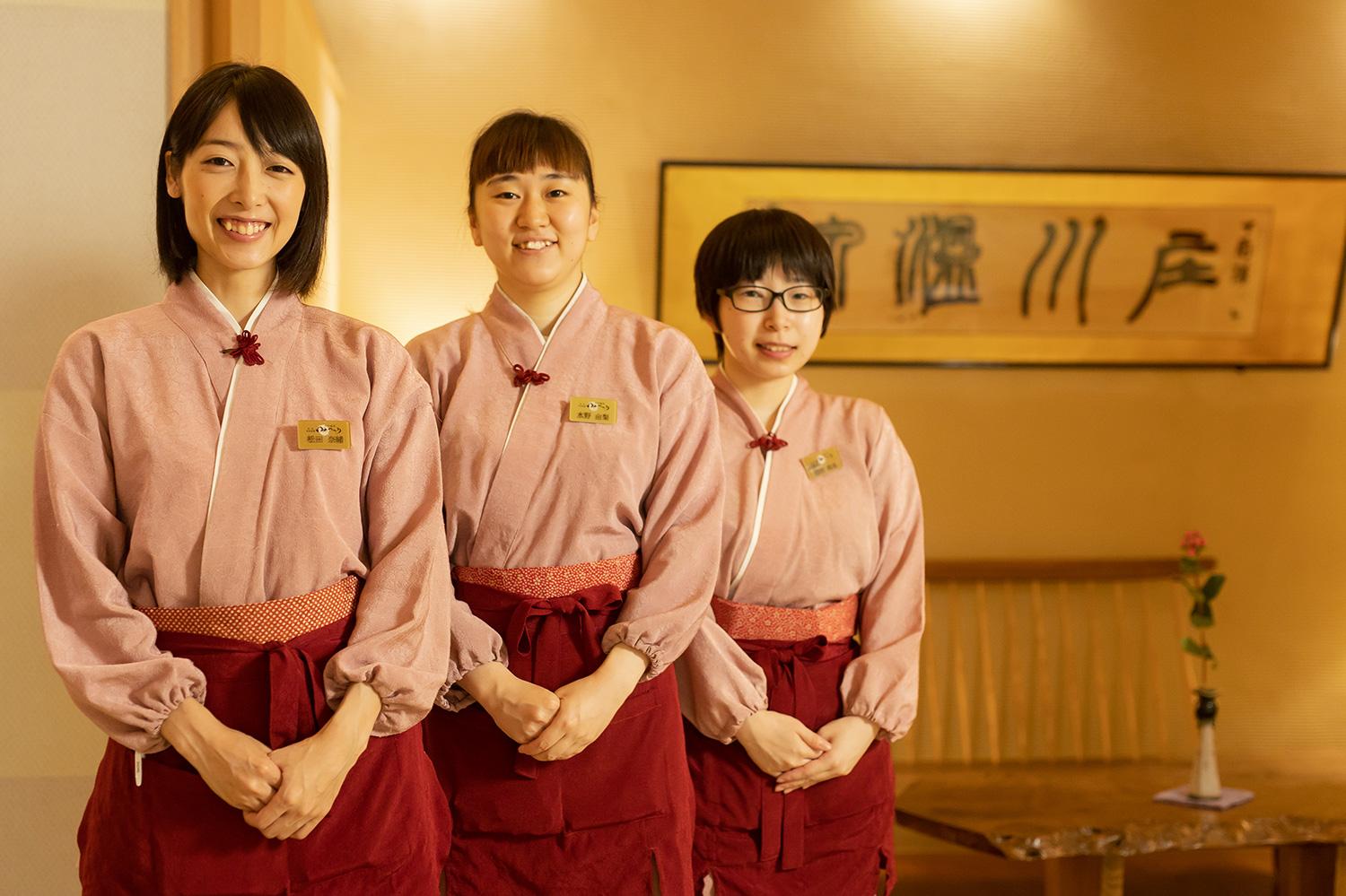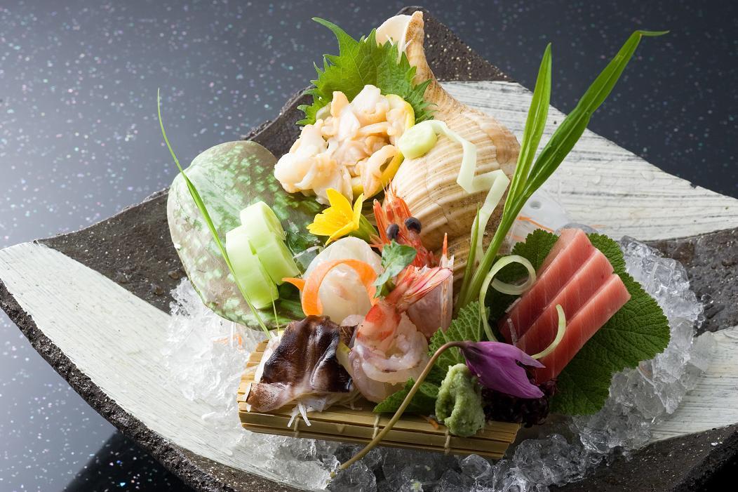 全館畳廊下が心地良く、日本庭園内にある露天風呂では、四季折々の風情が楽しめ、夜はライトアップされ幻想的です。毎朝、市場で直接仕入れる新鮮は海の幸を各階の厨房で調理し、出来たてを堪能できる美味の宿。五箇山のお膝元にあり、目の前には庄川峡の清流が流れる閑静な空間で、庄川の新鮮なアユや富山湾で水揚げされたホタルイカ、カニなどをたっぷりご堪能ください。